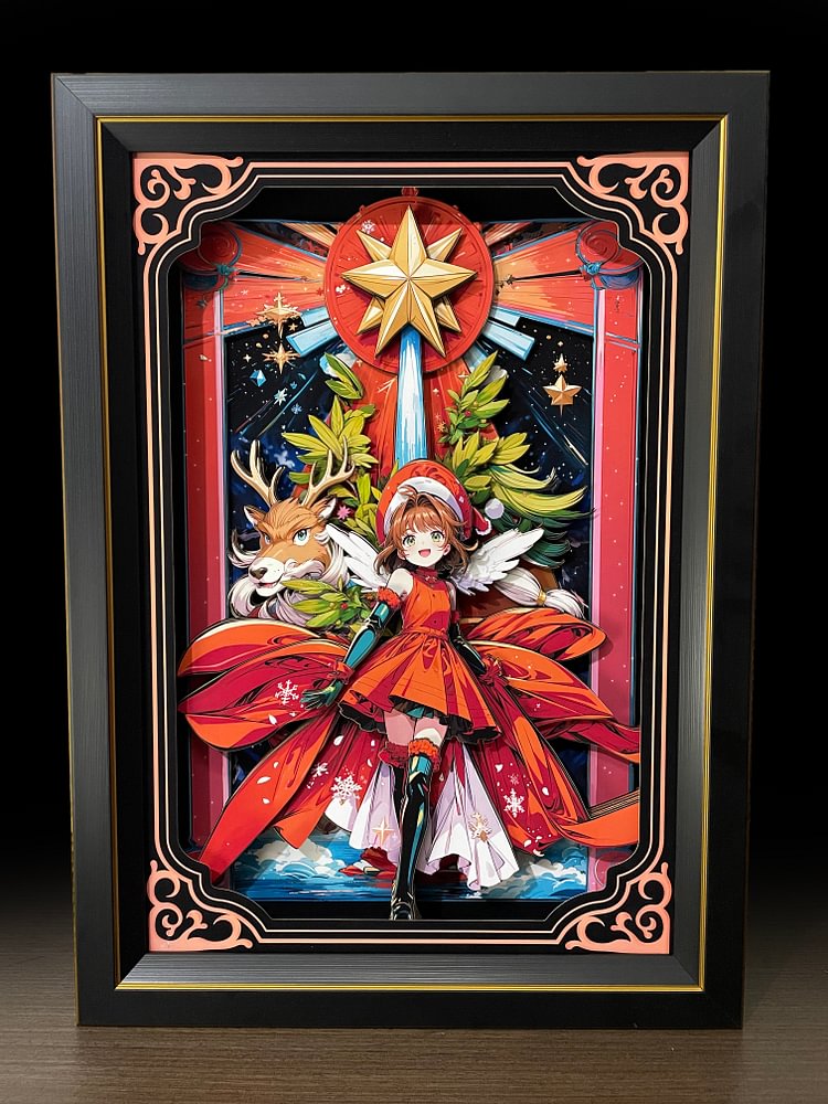 在庫あり 神秘的なアートスタジオ - 原神 - LED付きの光のガイド変身の胡桃の3D装飾画 - 装飾画シーン