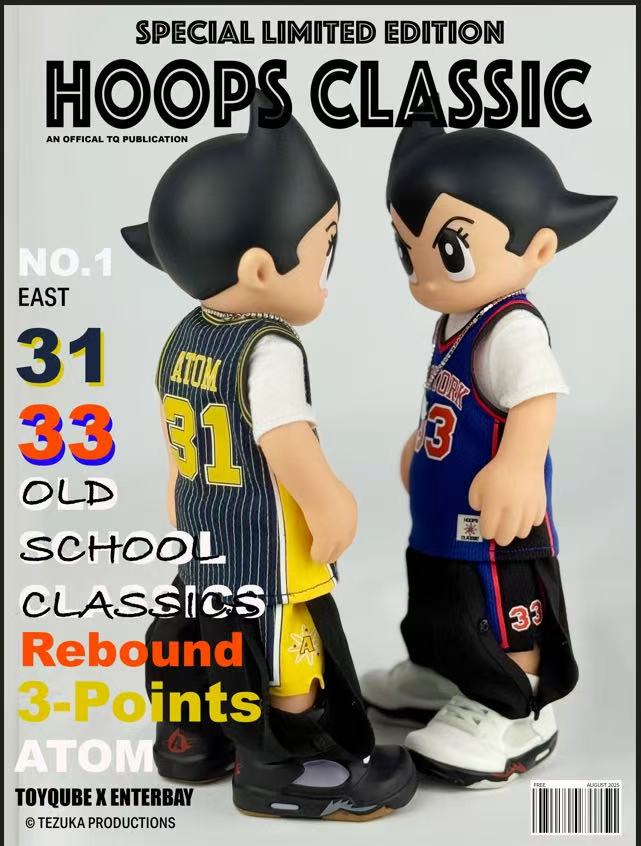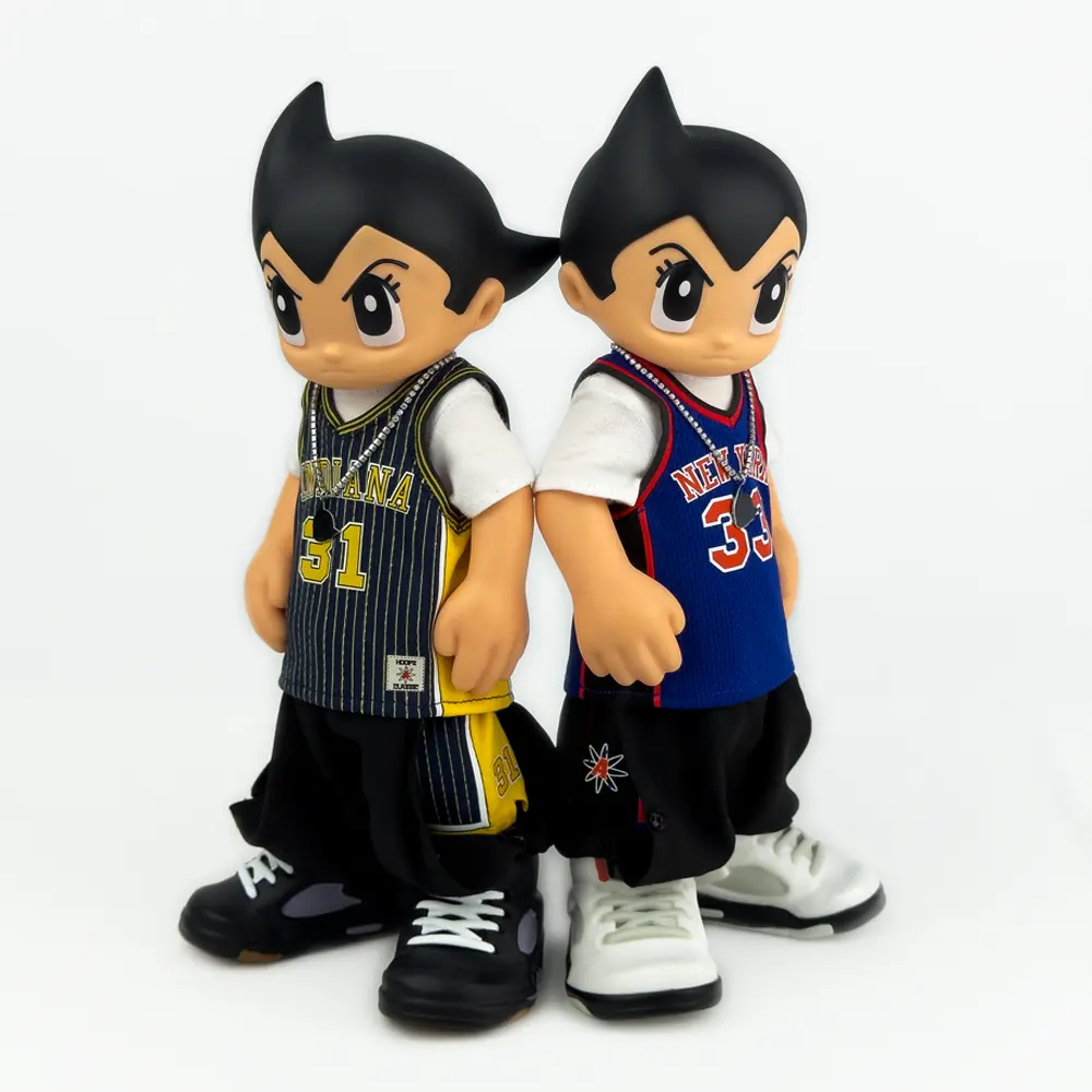 Each figure features a removable necklace with an Astro Boy logo pendant, a high detailed basketball jersey, and tear-away basketball pants.