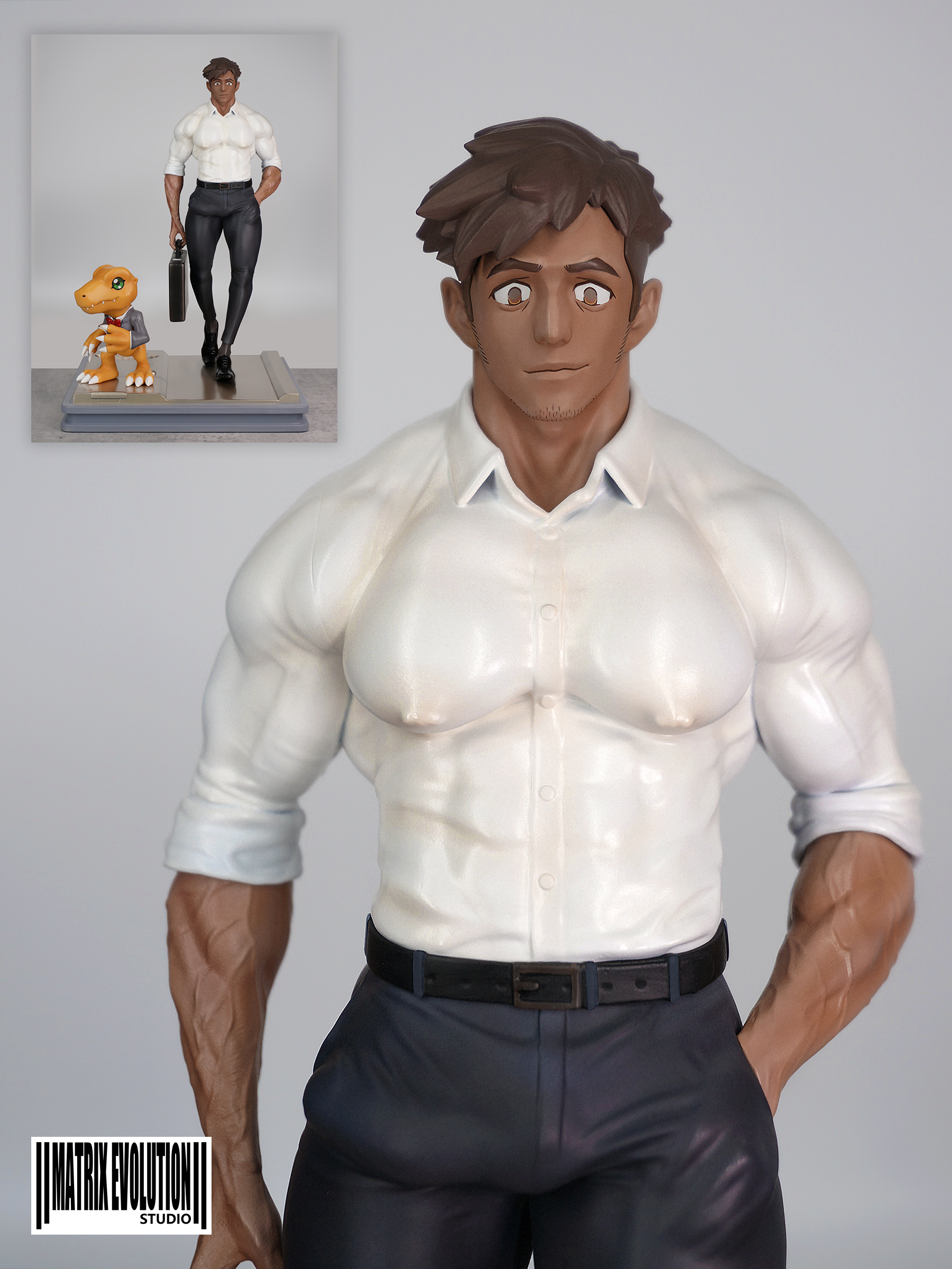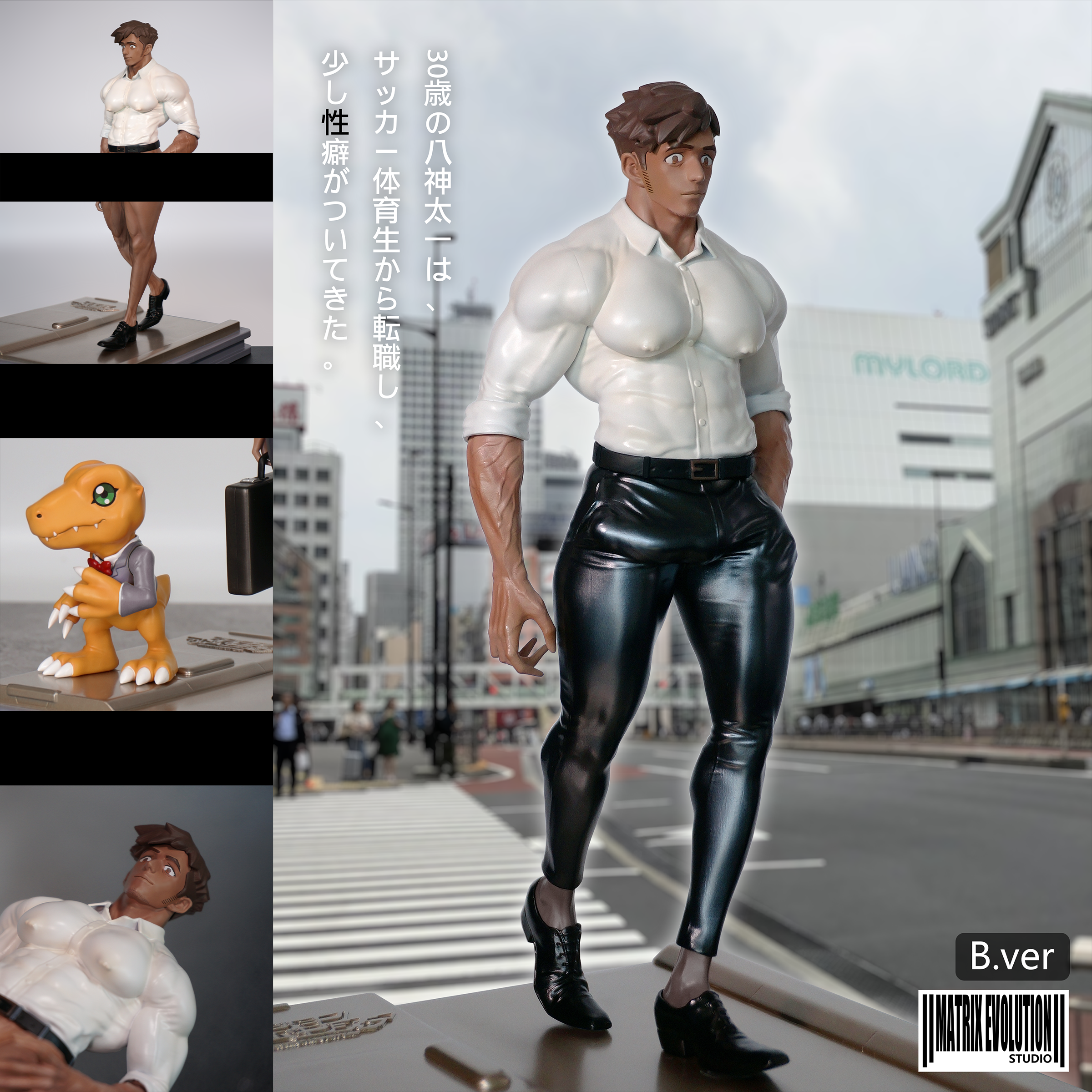 Model B: leather pants + bare legs + gift ring cow*1 + formal leather shoes + replacement left hand*2 hands + briefcase + suit Agumon + base + ID card