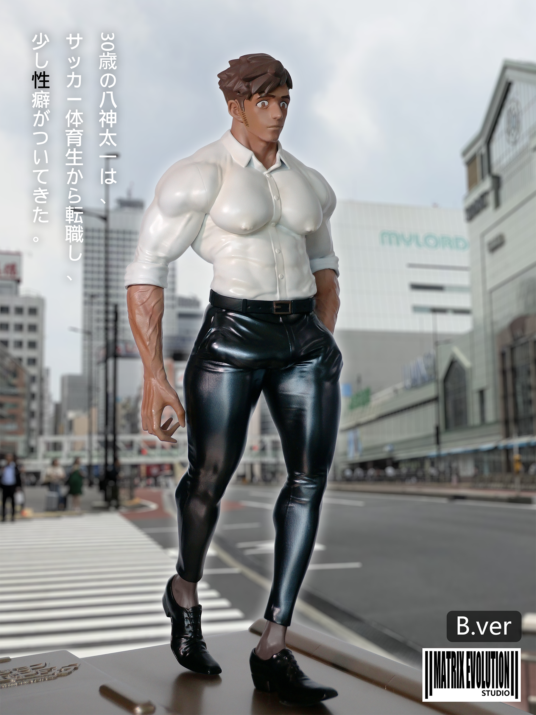 B Version: leather pants + bare legs