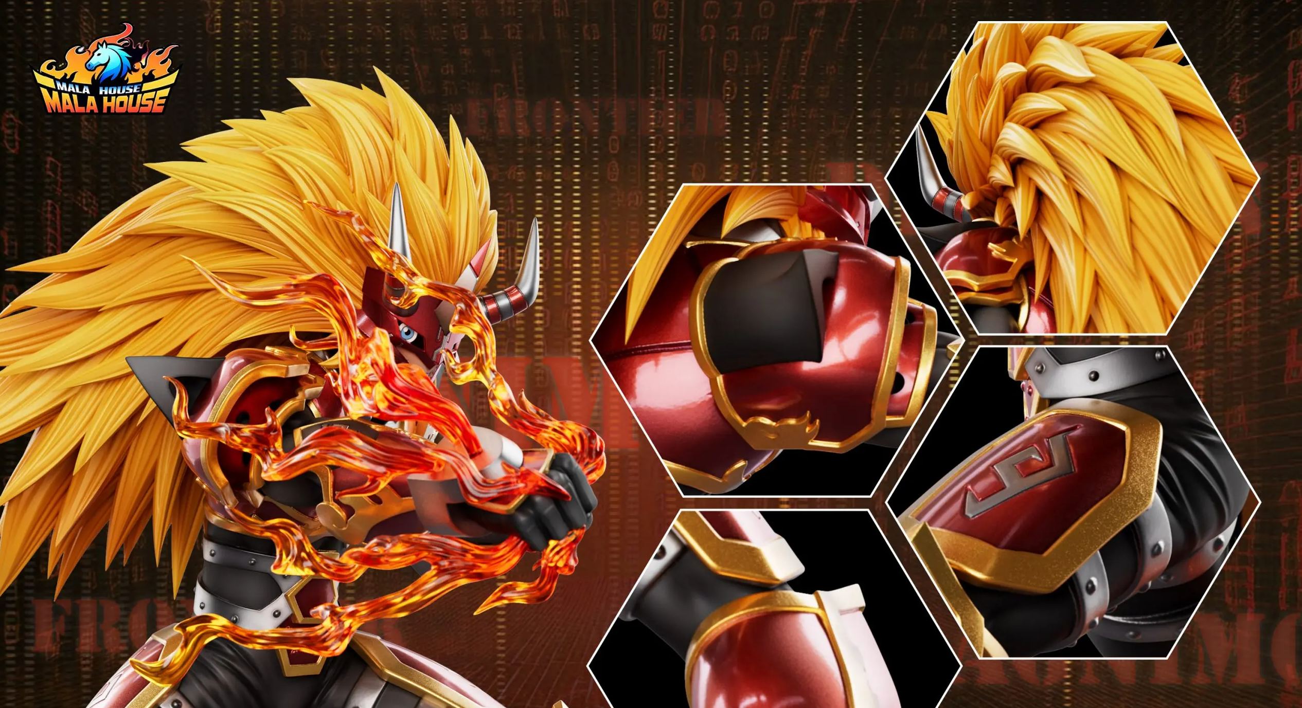 T1 Studio X MALA House Studio - Agnimon X Wolfmon X Chackmon Digimon Statue