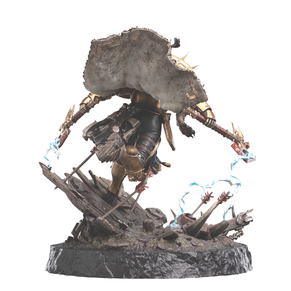 Scene completed with crushed Orruk helm and arrows embedded in the earth."
